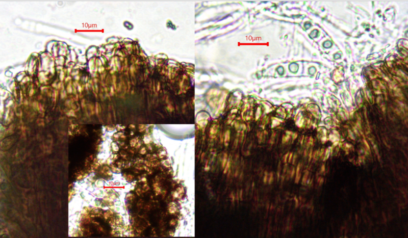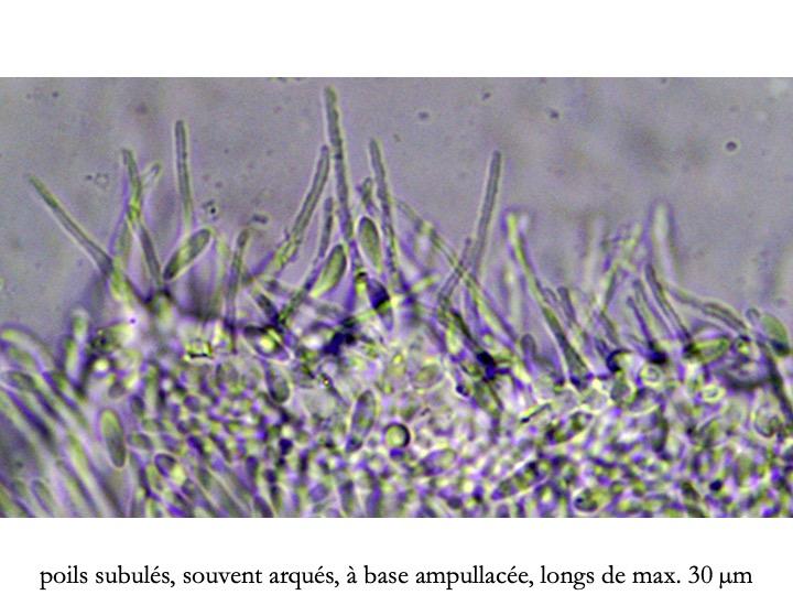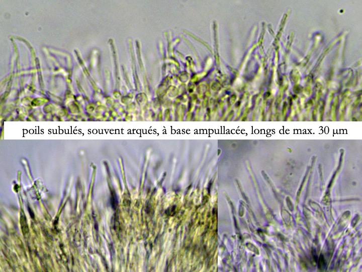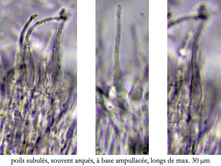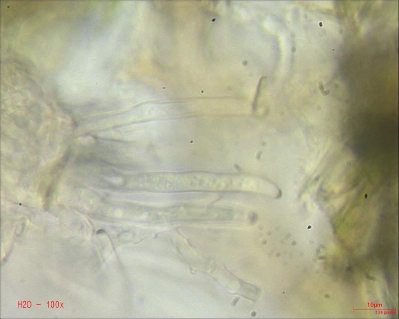 And the marginal hairs, which are longer and narrower and always pigmented, just like the walls of the excipular cells.