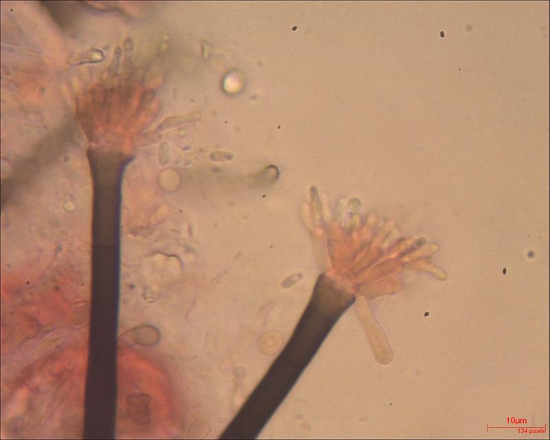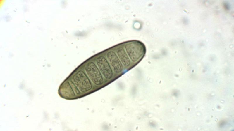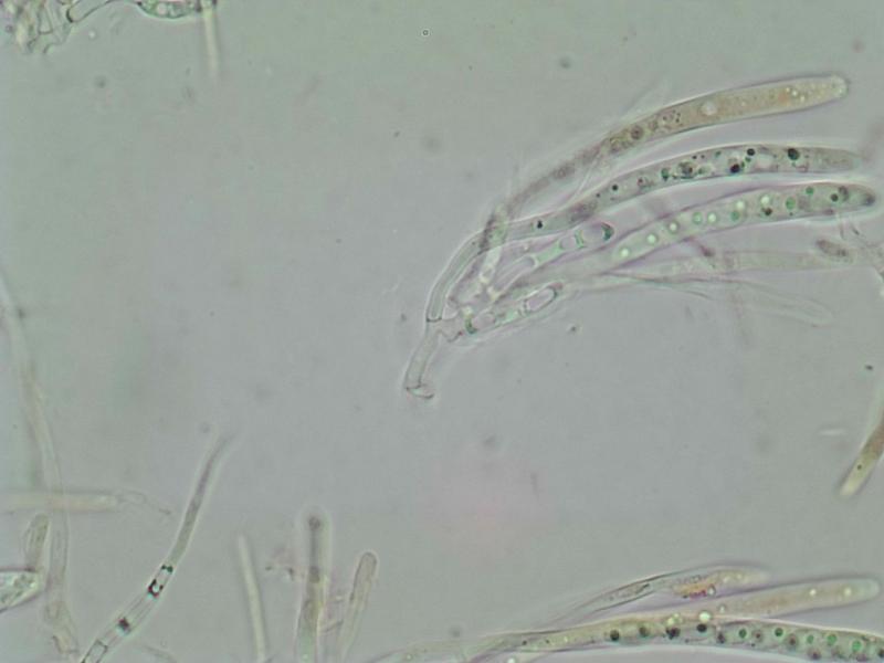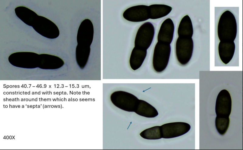 Hi there, although I couldn't see the fruitbody, I found these remarkable spores while inspecting a jelly fungus that was growing among moss. Any help will be appreciated. Thanks a lot.