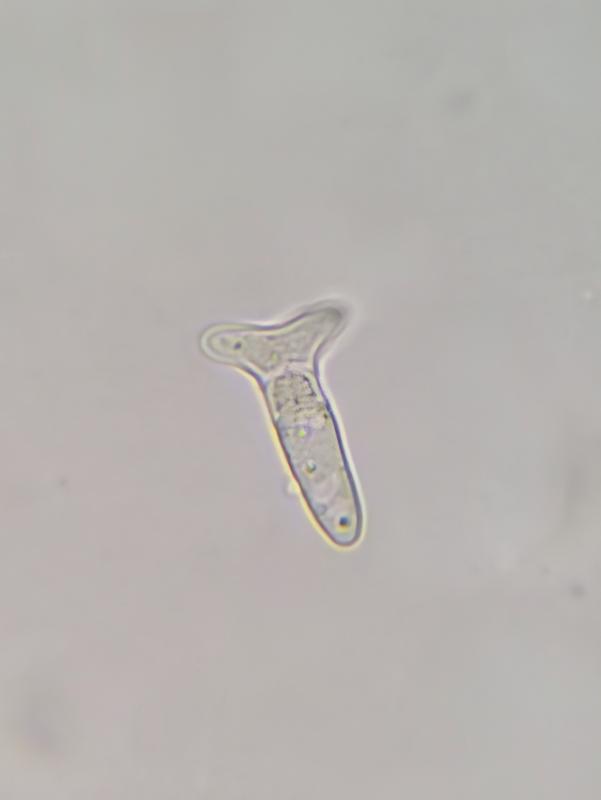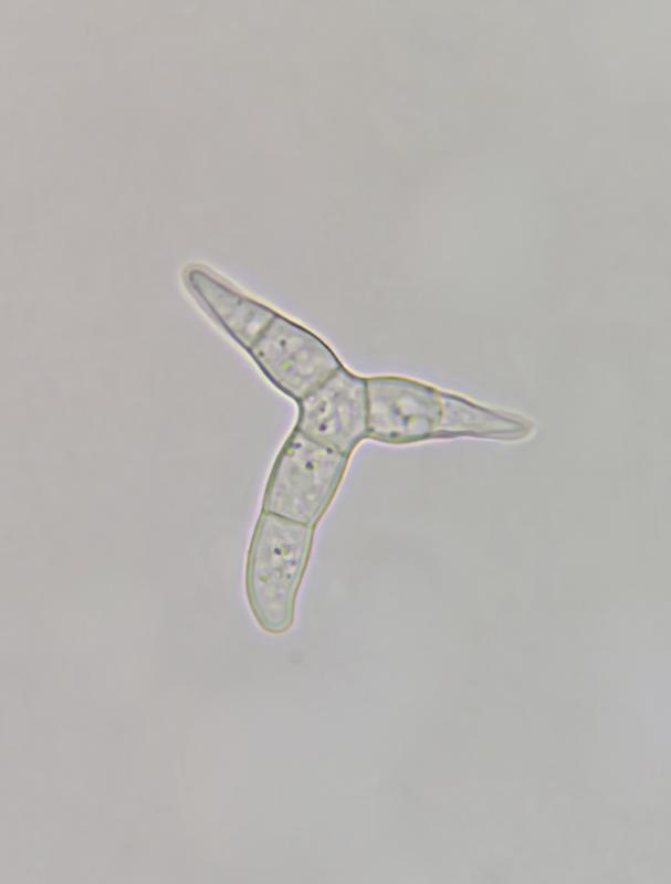 Spores « scutuloïdes ? », non septées , avec 2 à 3 grosses guttules plus plusieurs petites