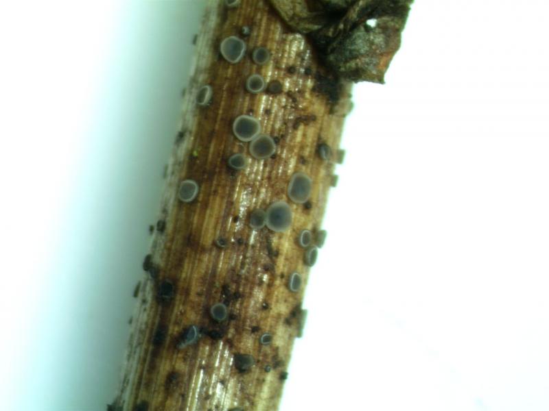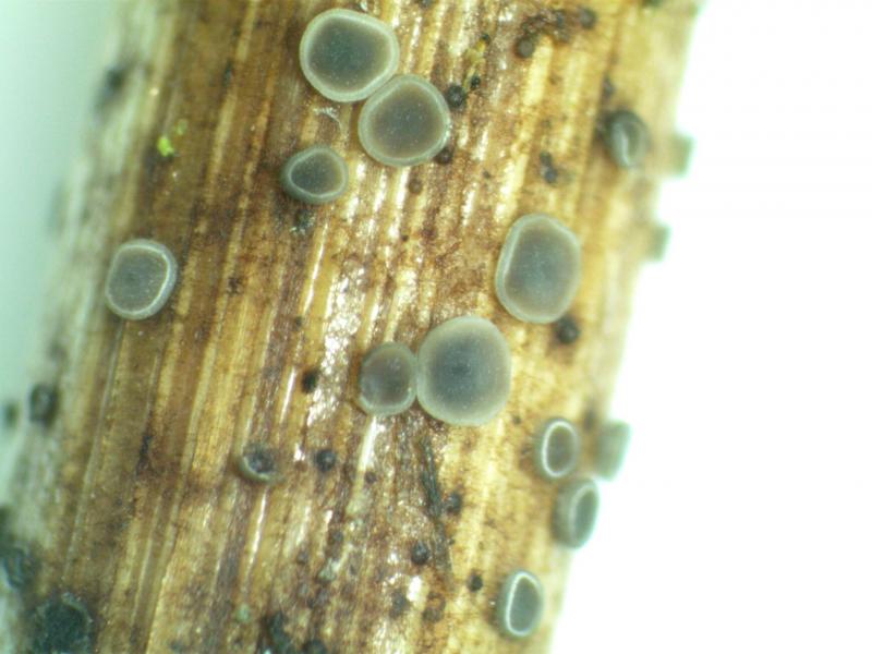 Hello,I found this one in October last year, on rutten leaves of Carex elata, on the bank of a small stream (Blekinge, southern Sweden). Unfortunately only a single fruit body, so I have microscoped just a small part of it. I´m quite sure it´s a Hymenoscyphus, and if so there are probably two alternatives - H. ombrophiliformis and H. syringaecolor. I think H. ombrophiliformis fits better, but the substrate maybe a bit odd? Are there any other alternatives?