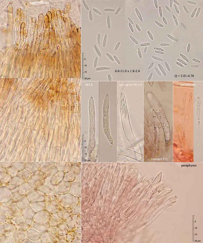 Paraphyses ne dépassant pas ou très peu les asques, pluri-guttulées, réfringentes, filiformes, cylindriques, très nombreuses.
