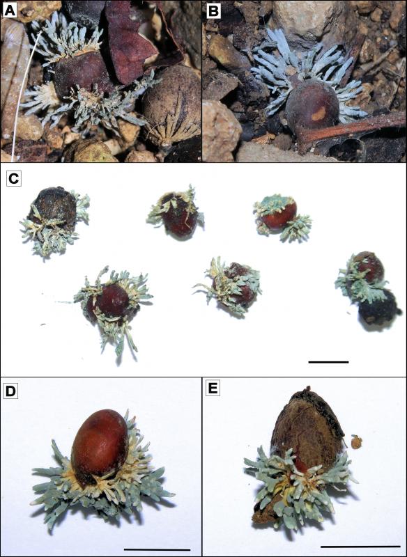 I am excited to see such interest in these palm seed parasite fungi. They have been a favorite of mine for many years. I am the creator of the species list linked in a previous comment (http://mushroomobserver.org/species_list/show_species_list/611).