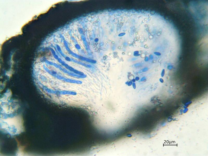 In vivo veritas : les ascos sont à observer dans l'eau puique les colorants tuent ou modifient les cellules et les spores. Mais comment faire quand les éléments sont inclus dans les tissus, et qu'il est nécessaire de chasser l'air pour faire des observations lisibles ?