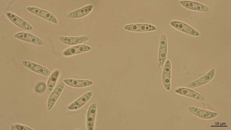 Ascospores (16.6) 17.7-19.2-20.8 (23.1) × (4.2) 4.3-4.7- 5 (5.9) µm, Q = (3.37) 3.70-4.07-4.54 (4.94), without cilita, not septate.