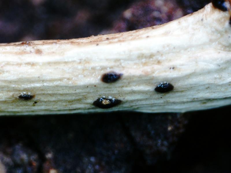 These conidiogenous hyphae produce ellipsoidal, hyaline conidia with one or two large lipid droplets inside. Free conidia with brown intracellular pigment were also observed, which could perhaps correspond to mature conidia.