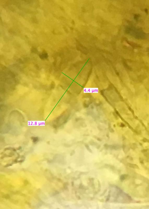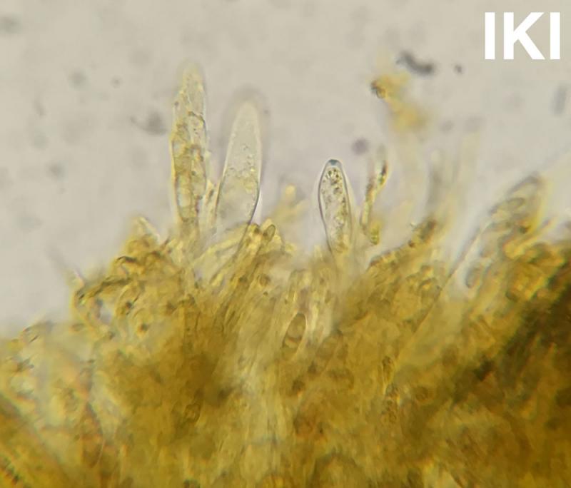 Asci IKI+, biseriate in the asci, 50-69 x 7.7-8.9µm— some fully formed asci had no spores.