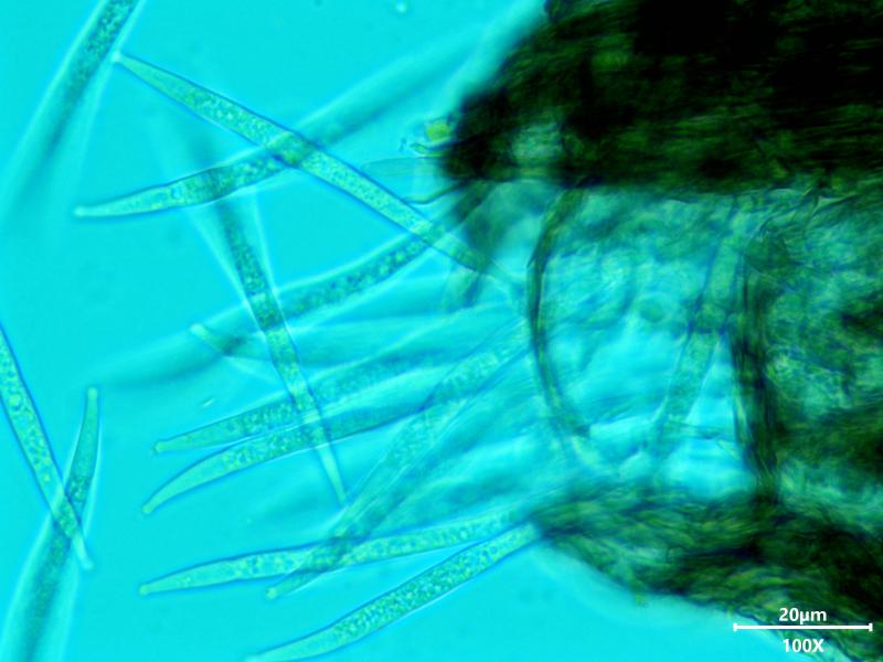 Morrisographium fusisporium, which occurs on Robinia, has much larger spores than what I observed.