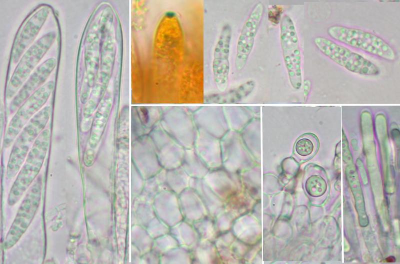 Asques 95- 120 x 11-13 µm, IKI +, bleu, crochets +