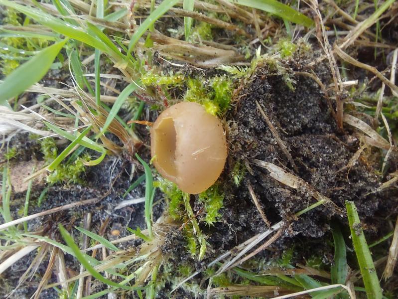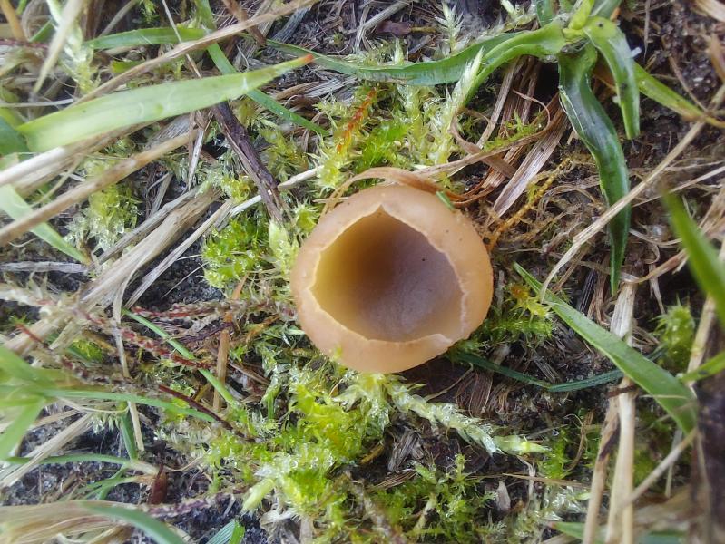 The grassland is grazed by sheep, and the Pezizas' habitat could possibly be a urine sanctuary.