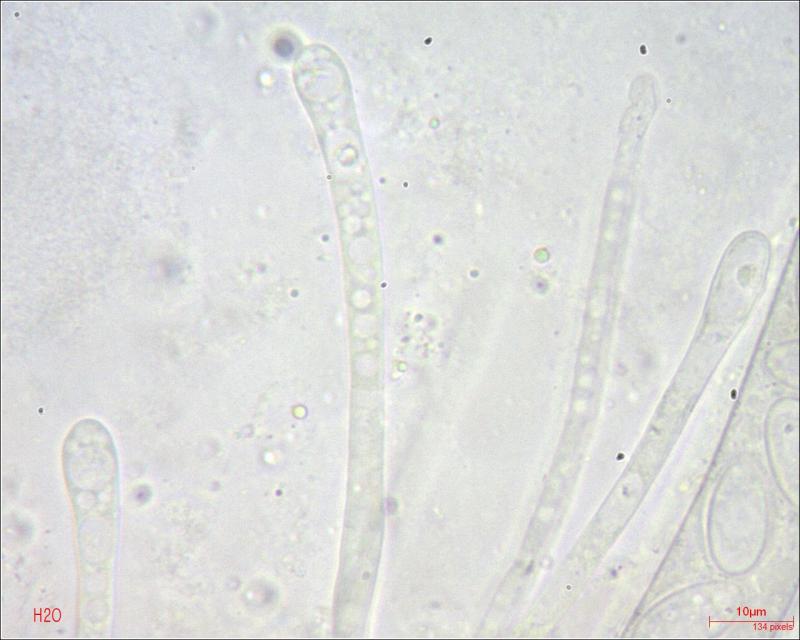 - Paraphyses hyaline, filled with oil droplets, contents in water preparation not yellowing
