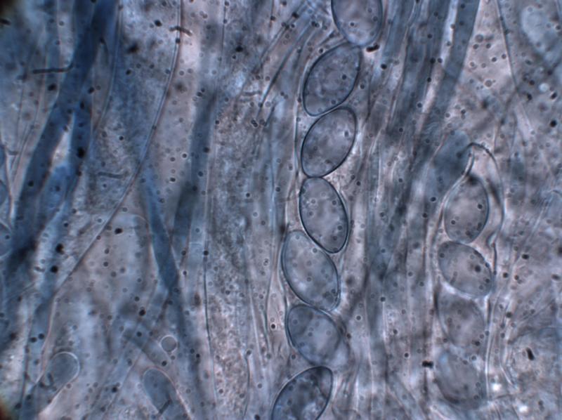Malcolm  GreavesThis Helvella was in mixed woodland. Uniform cupulate darkish hymenium with a smooth concolourous underside. The stem was much darker with what looked like a tomentose surface and it had a groove down the whole length. The spores were almost all smooth and fusoid but some had rounded warts. Different keys give different suggestions. The mixture of smooth and occasional large warted spores leads is a feature of elastica but I don't think it is that.