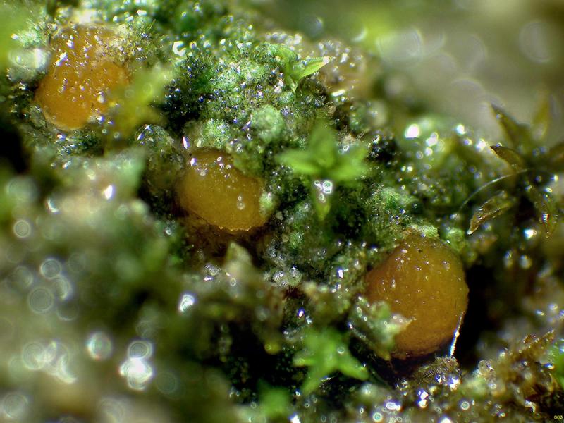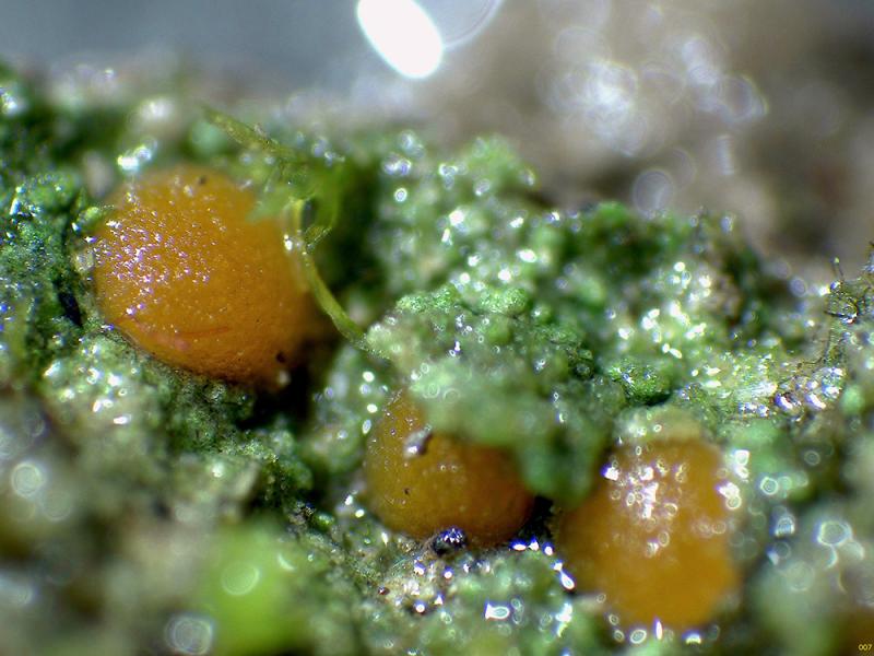 Orange ascomata, flattened grain-shaped, with a diameter of 0.6–0.8 mm.