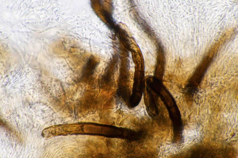 I see with dead material it is much less easy to observe free mature spores, because they are shot away during drying.