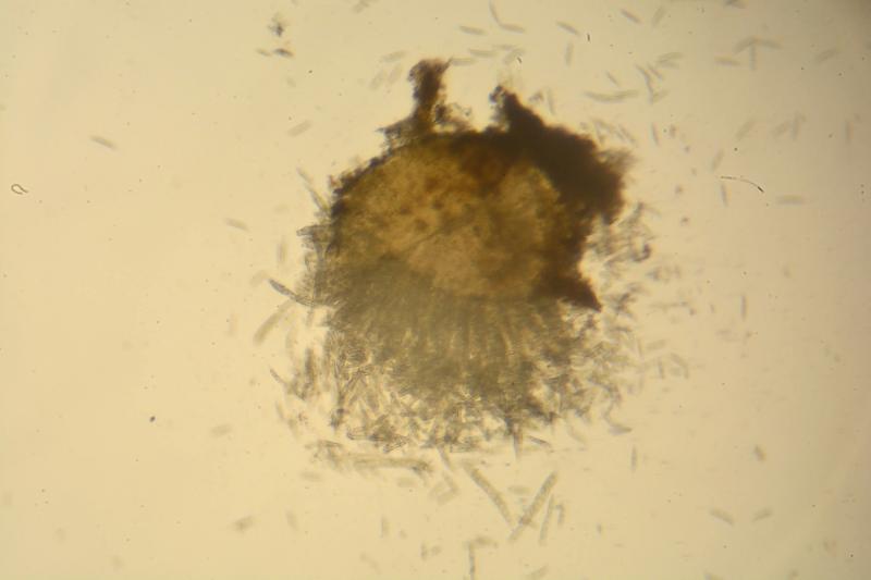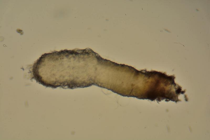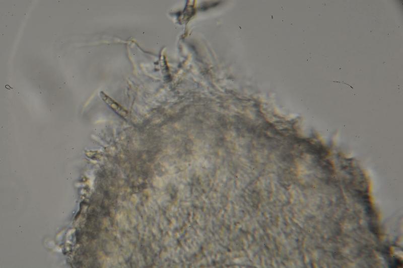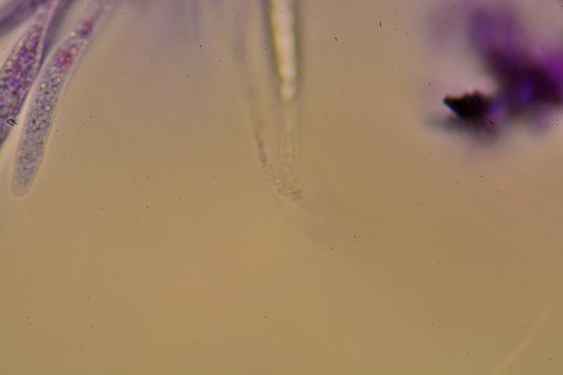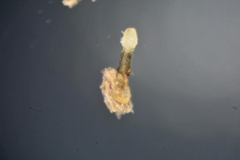Specimens less than 1 mm long, growing on an unidentified dead branch, collected two months ago in a riverside area and kept in the refrigerator ever since.
