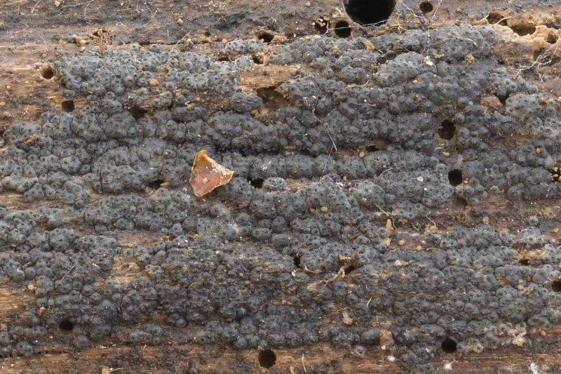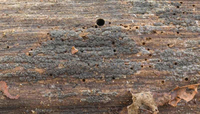 Substrate: a fallen, slightly moist branch of Carpinus betulus (approx. 3–4 cm thick)
