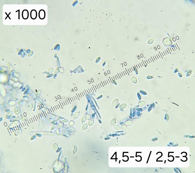 Different references give different spore size ranges for M. lagenaria, and if anything our spores seem small by comparison. Our collection would appear to constitute a range extension for M. lagenaria, if it can indeed be said to be that sp.. Is there another possibility?