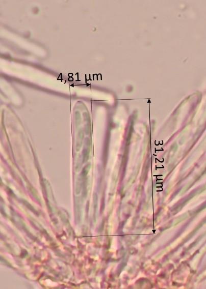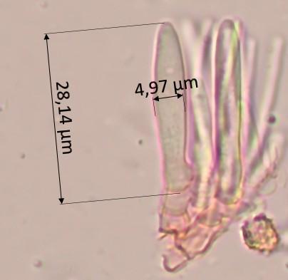 Diamètre : 2 mm. Hauteur de la marge à la base du stipe 2 mm