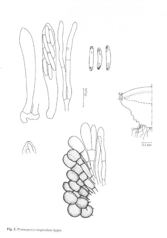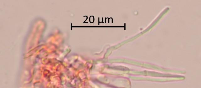 Paraphyses ne dépassant pas ou très peu les asques, pluri-guttulées, réfringentes, filiformes, cylindriques, très nombreuses.