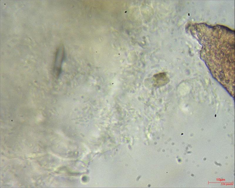 Conidia: (2.1) 2.4 - 3.6 (3.7) × (0.6) 0.63 - 0.9 (1) µm