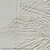 3-4 µm brede, 20-30 µm udragende; hår 130-210 x 3,5 µm, tilspidsede, tyndvæggede,