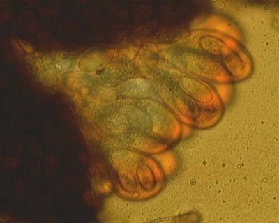 Les asques (avec 4 spores) mesurée (63.58-65.2) X 34.81 µm.