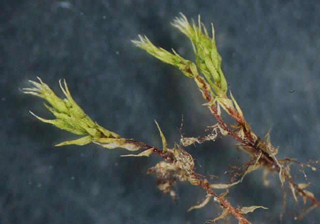 Each are in dried state, humid state and under microscope, two mosses are noted m1 and m2.