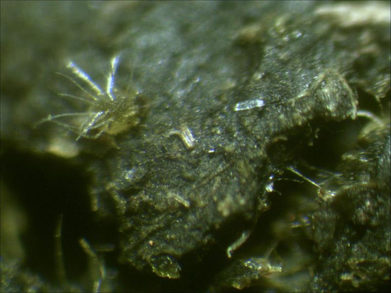 Hairs: 245-340x7.5-9 um (13.13.5 at the base); septated; pointed tops; thick walled 2-3 um; no bulbous base
