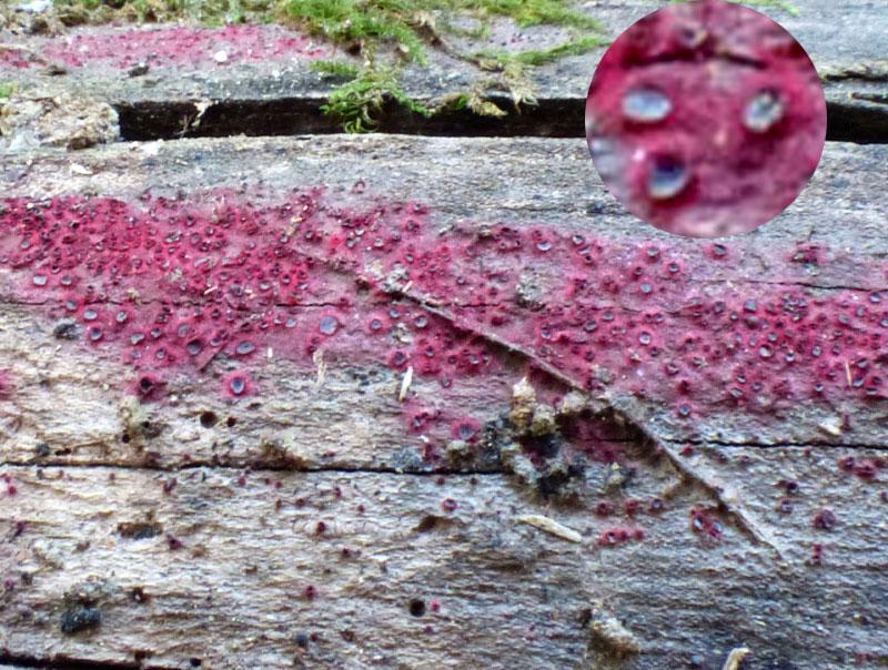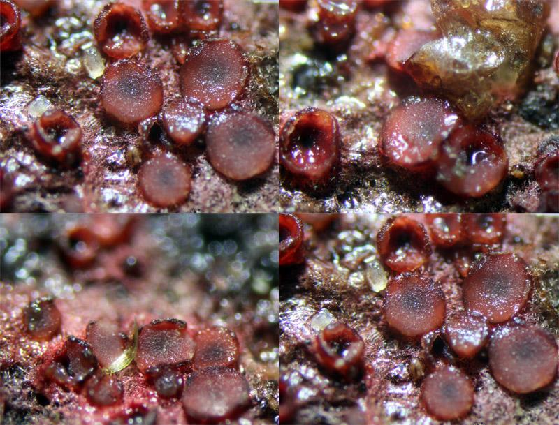 this is Patinellaria sanguinea, the red subiculum is very typical.