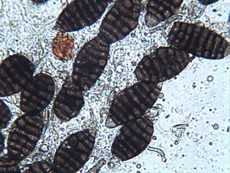 Conidios de 30--35 x 18--20 sin contar los apendices, con 5--7 septos
