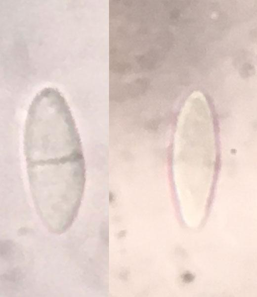 These tiny (0.4-0.5 mm diam.), whitish, short-stip