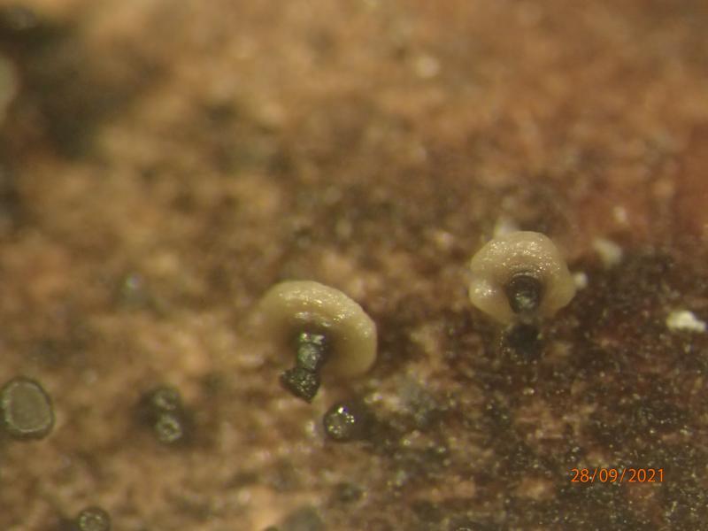 Re : Black-stalked apothecia with grey hymenium on Picea abies cone