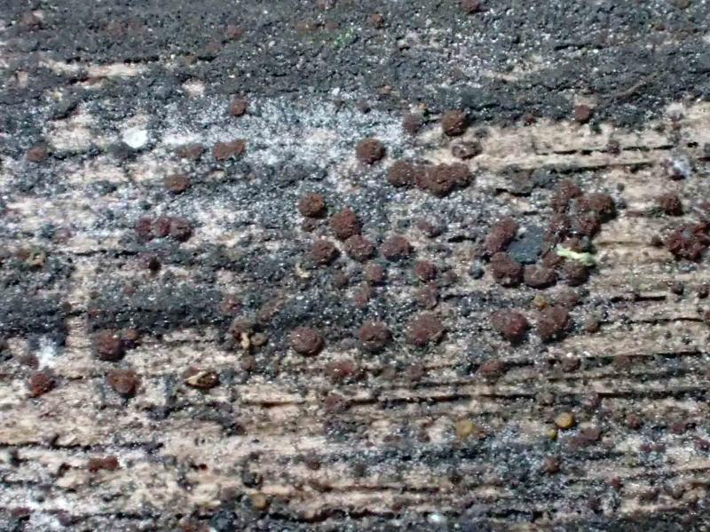 Sporodochia subspherical, 0.3-0.5 mm diam., crowded to scattered, rust coloured.