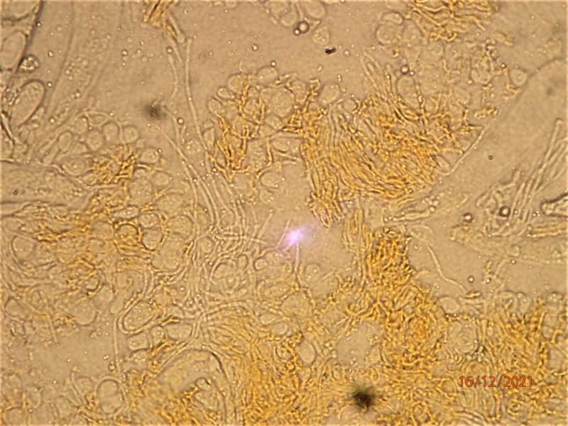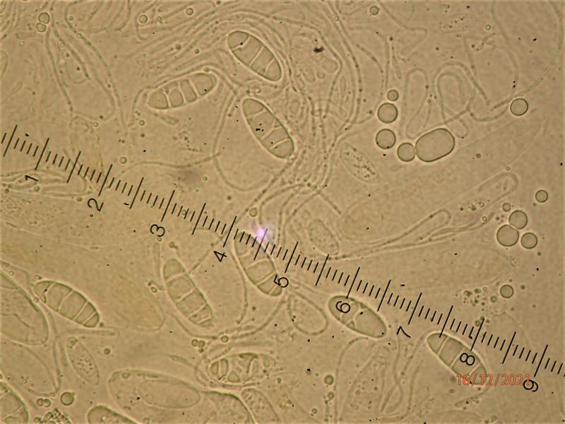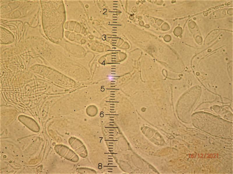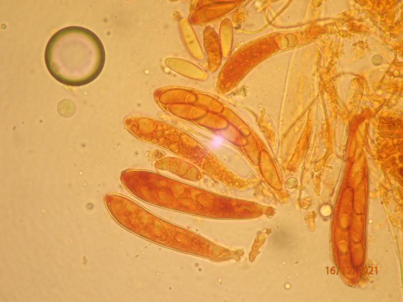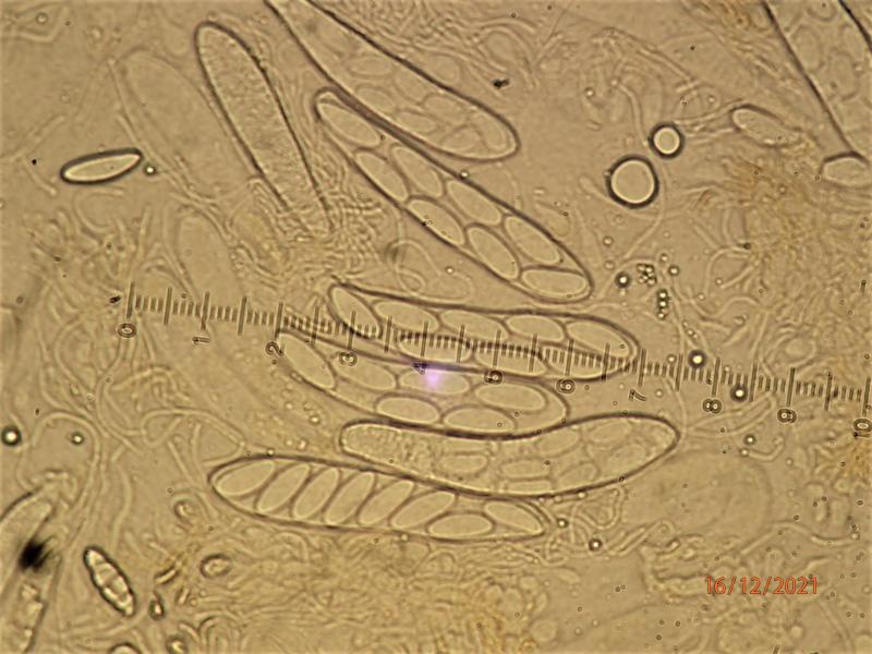 Just a couple of really tiny (0.3 mm) apothecia on bark of Betula. Spores ca. 25-27 x 10-11 mcr. (measured in KOH) Appearing septate (but only large guttules?). Aseptate in Baral'sche Lösung. Paraphyses filiform. +/- isodiametric cells plus yellow-pigmented thin hyphae in excipulum. Ascus pore IKI+ (deep reddish brown in Baral'sche).