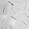 Spores fusiformes à contenu huileux 3-5. Parfois septées. 19,6-23,1 x 3,6-4 µm