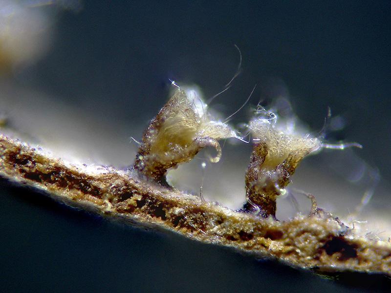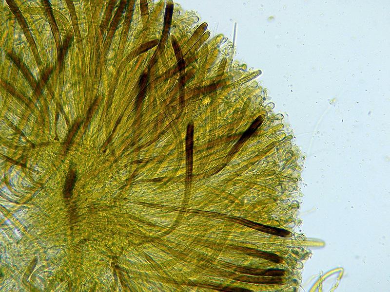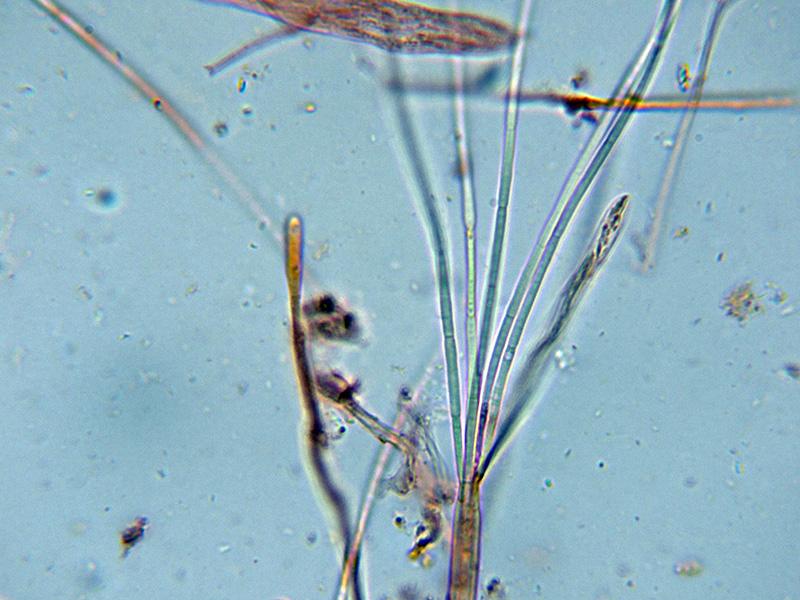 Aunque la microscopía induce me a pensar en una Vibrissea, hay datos que no me encajan, la hoja no se contraba en un medio acuático y tampoco subacuático, no había ni tan poco un pequeño charco, estaba en a hojarasca del suelo al borde de un sendero bajo robles y si estaba mojada era por la lluvia de los días anteriores. por lo que tengo dudas incluso del genero.