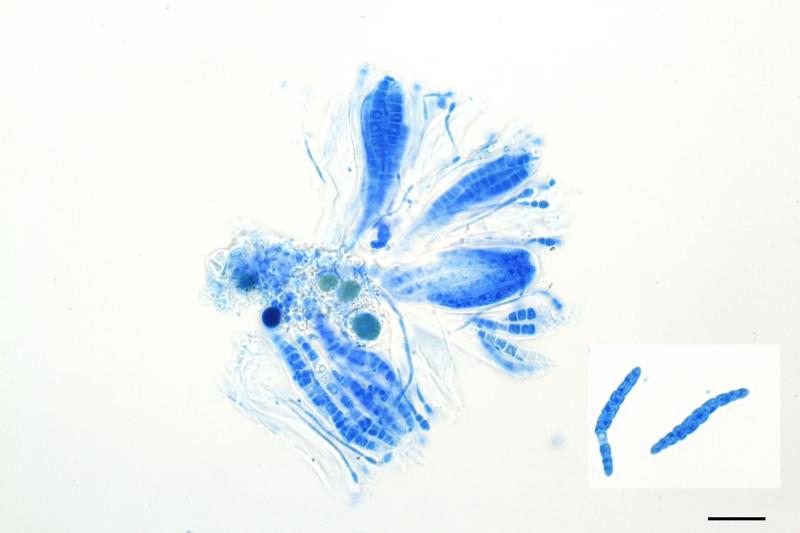 Keine Reaktion in Lugol; die Sporen sind mehrfach septiert bis 10 mal und mit Epispor.