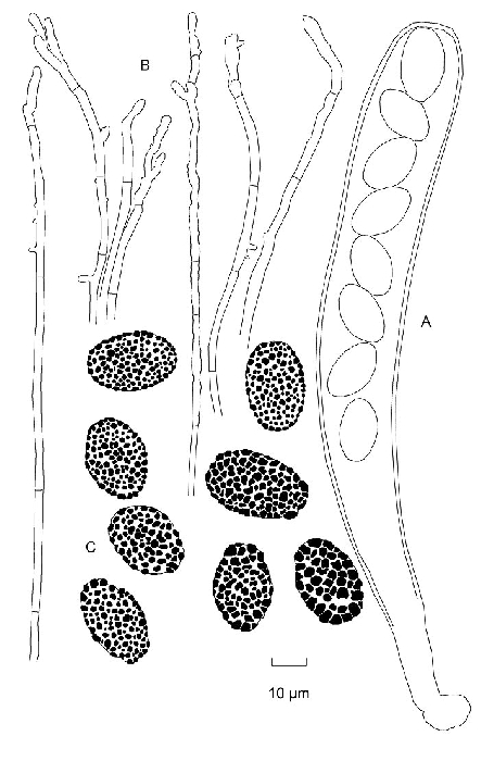 Il s'agit ici d'un aspect de la variabilité de l'espèce, probablement due aux conditions de croissance, comme indiqué dans les notes de van Brummelen, sur cette espèce. Cf. A world-monograph of the genera Ascobolus and Saccobolus, Persoonia, suppl. 1: 150 (1967).
