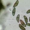 Spores unisériées ( ?), de formes irrégulières, vert grisâtre, brunâtres à maturité, 1 septum, étranglée au septum, une cellule plus grande, les deux apex (+/-) pointus-arrondis.