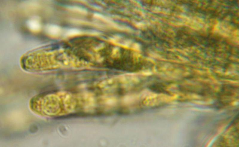 Interesting to know would be if the ascus apex reacts hemiamyloid (in Lugol or after KOH in MLZ) or is permanently inamyloid. This variation is mentioned in my key on my homepage, which I just noticed is again out of order.