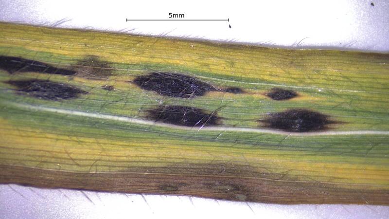 Un parasite sur les feuilles de graminées qui forme des croutes noires sur les feuilles.