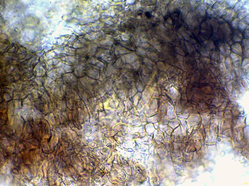 Hyphae on the peridium and exciple have an angular texture.