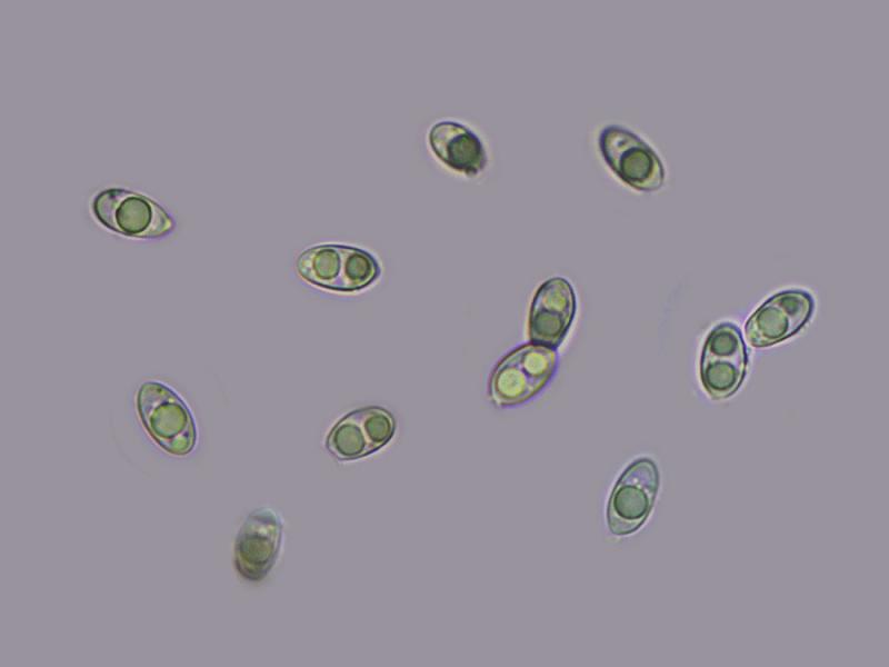 These conidiogenous hyphae produce ellipsoidal, hyaline conidia with one or two large lipid droplets inside. Free conidia with brown intracellular pigment were also observed, which could perhaps correspond to mature conidia.