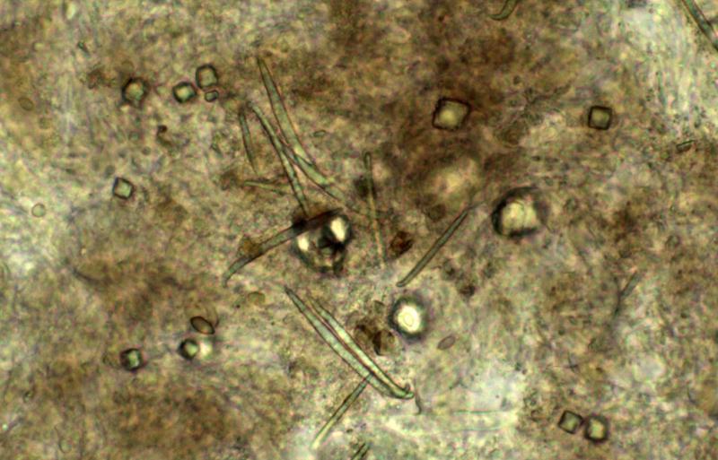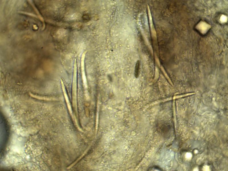 Esporas de 6,70 - 8,60 x 2,60 - 2,90 (no son de buena calidad)