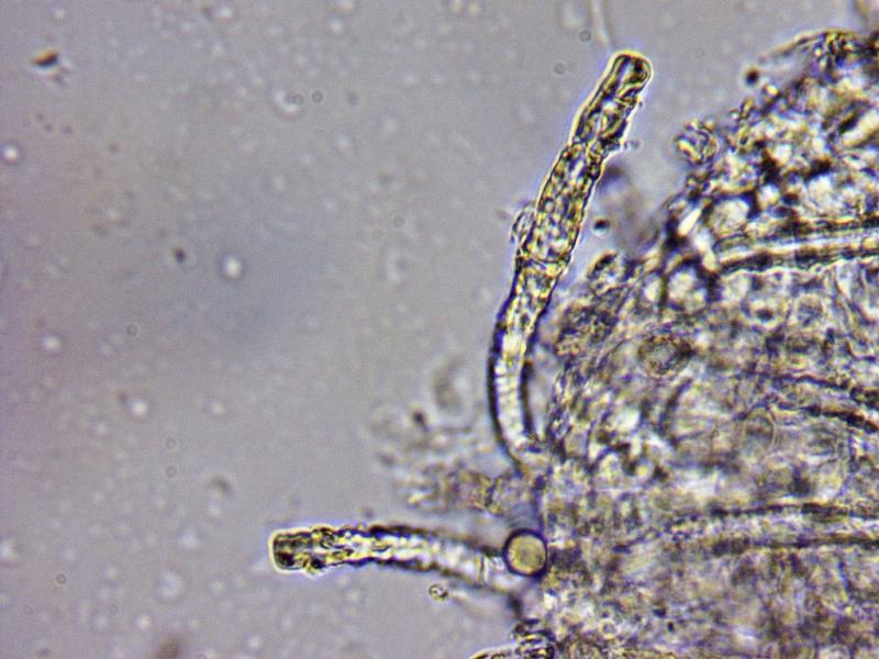 No asci, no spores... just these structures, maybe incrusted hairs??