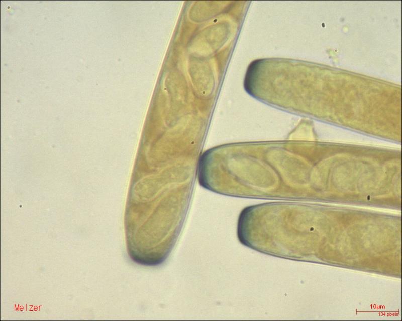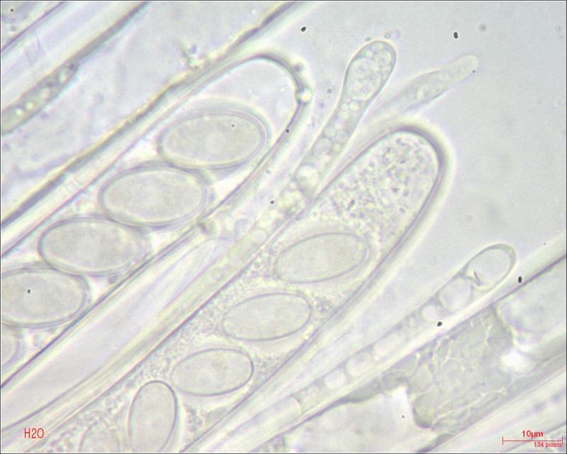 - Paraphyses hyaline, filled with oil droplets, contents in water preparation not yellowing
