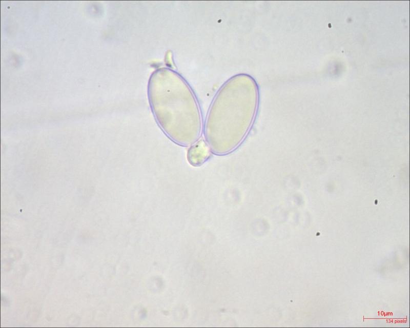 - Spores smooth, without oil droplets: (17.5-)19.2(-21.0) x (9.7-)10.45(-11.1) (N=20; in sporee)
