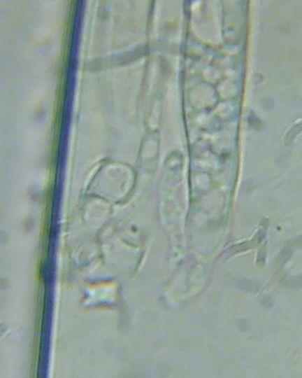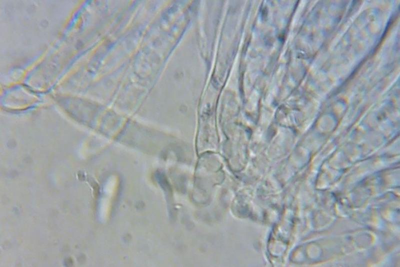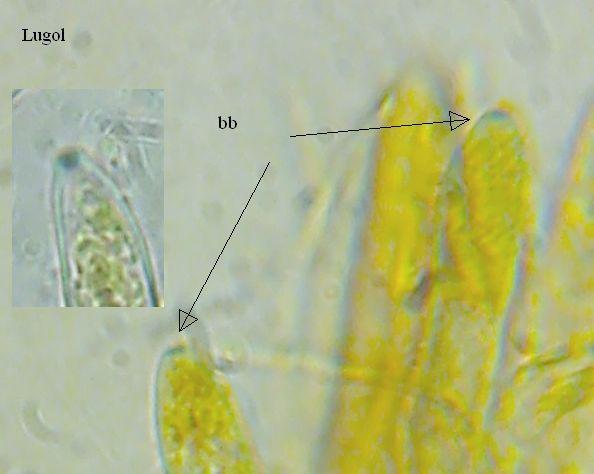 The reaction to iodine was positive, exactly the same as in the drawings on Zotto's disc in the Pyrenopeziza deuncinata catalog.