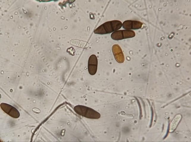- Conidia brown, ellipsoid to ovoid, 1-septate, rarely 2-septate, with a (slightly) thick septum, 17,5-24,5(-28) x 9,1-11,2 µm