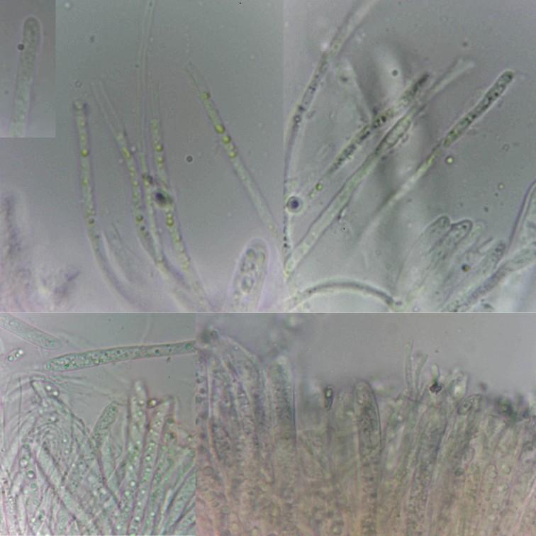 - Paraphyses rarely exceeding asci, with some droplets, apices never swollen, 1.5 - 2.8 µm at the apex.