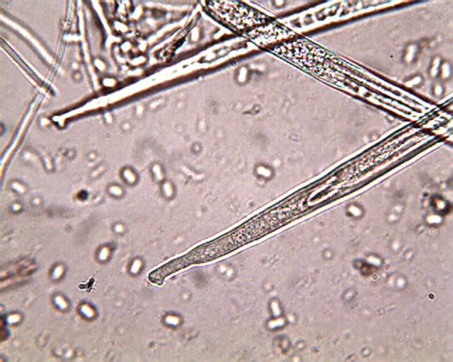 largura he medido sobre 140 micras y cada trocito 4-10 x 3-3,5 micras.
